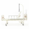 Кровать имеет механический привод и четыре секции, угол наклона которых можно регулировать в зависимости от потребностей больного. Модель выполнена из стали, поверх которой находится кожух из прочного пластика.
